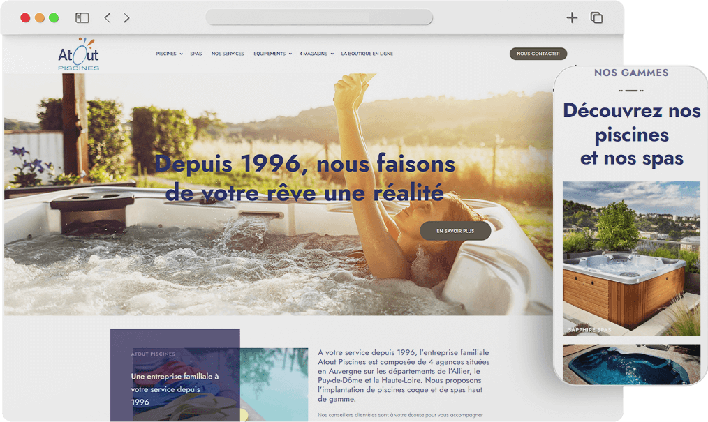 Véritable vitrine en ligne pour Atout Piscines, le nouveau site est plus rapide, plus moderne et plus clair.