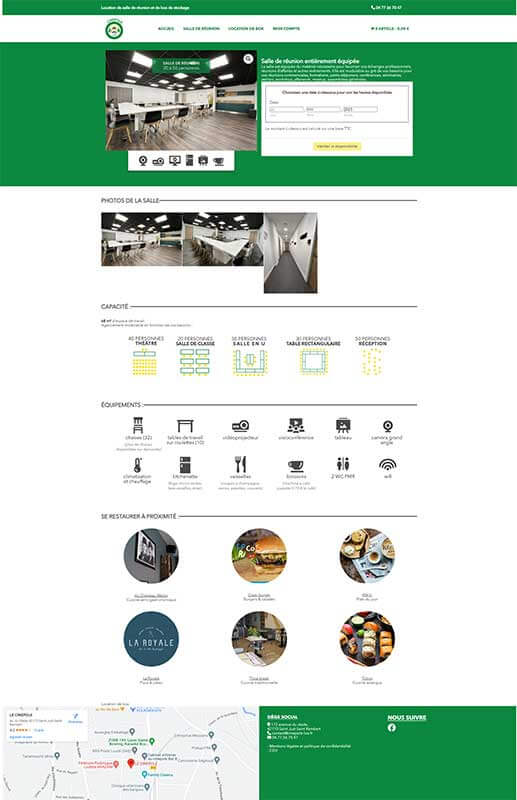 Ergonomique et très simple d’utilisation, ce site développé sous WooCommerce permet de sélectionner une salle, de choisir ses dates et heures et de faire une demande de réservation en quelques clics.