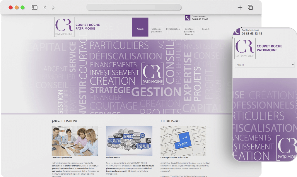 Le cabinet COUPET-ROCHE PATRIMOINE accompagne ses clients, particuliers et chefs d’entreprise, dans la création, la gestion, l’optimisation et la transmission de leur patrimoine. Anne-Sylvie Coupet-Roche s’occupe de la gestion des dossiers auprès des différents établissements bancaires, et négocie les conditions de taux, de garanties, d’assurances et frais. Elle vous propose également de nombreuses prestations: