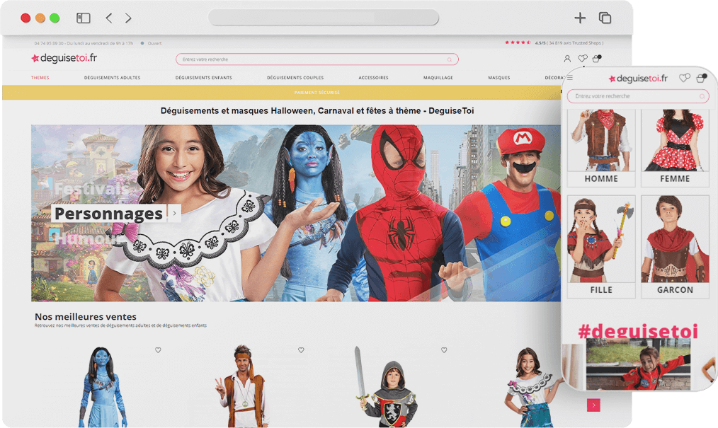 DéguiseToi.fr fait confiance à SFI depuis de nombreuses années. En effet, certains de nos lead devs et développeurs sont régulièrement dédiés au projet lorsque des travaux de refonte et d’ajouts de fonctionnalités sont lancés. Notre expertise en Symfony nous a permis de faire évoluer DéguiseToi.fr vers plus performance et de flexibilité.