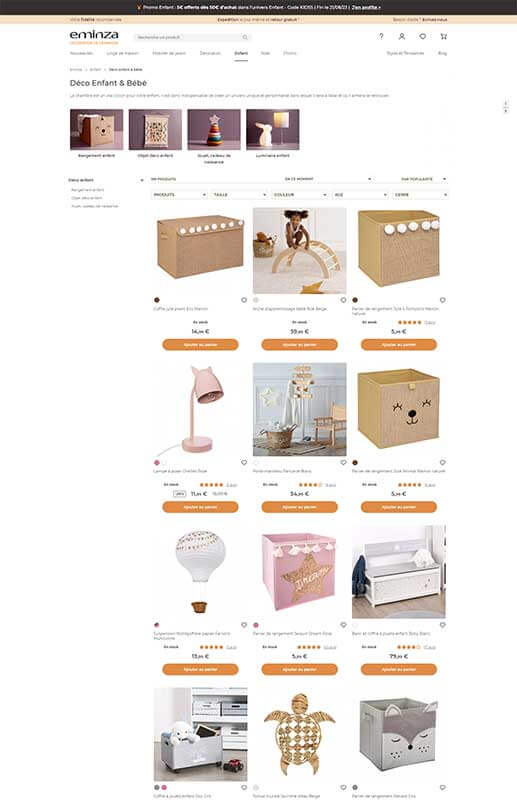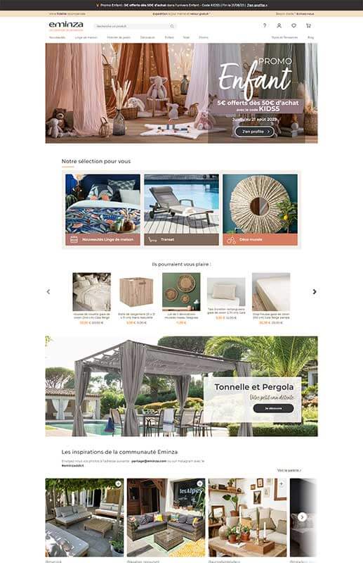 Créée en 2011, Eminza est une galerie marchande en ligne “Déco de la maison” composée de 4 boutiques: Décoration de Noël, Linge de Maison, Mobilier de jardin, et Déco de salle de bains et d’un webzine très branché déco.