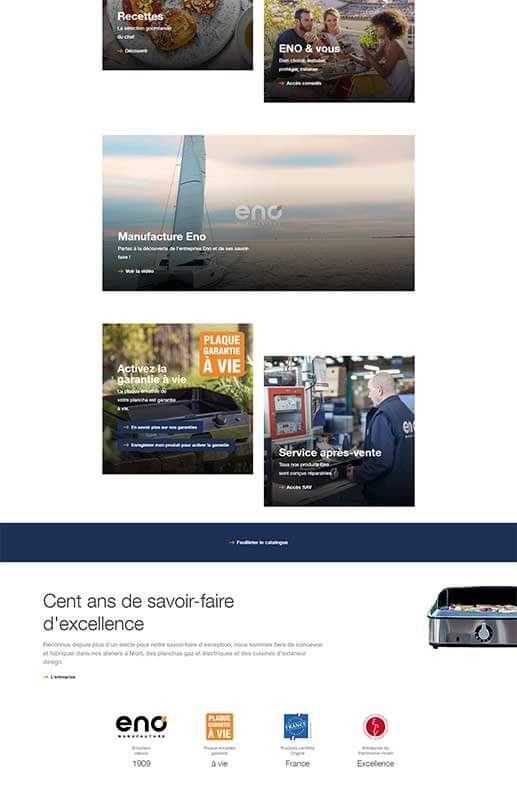 ENO est une entreprise renommée dans la conception et la fabrication de planchas pour l’outdoor ainsi que de cuisinières pour bateaux de plaisance. Leader mondial dans le secteur du nautisme depuis 2006, ENO s’est imposé comme la référence incontestée des planchas en fonte émaillée haut de gamme, en prônant le Made In France.