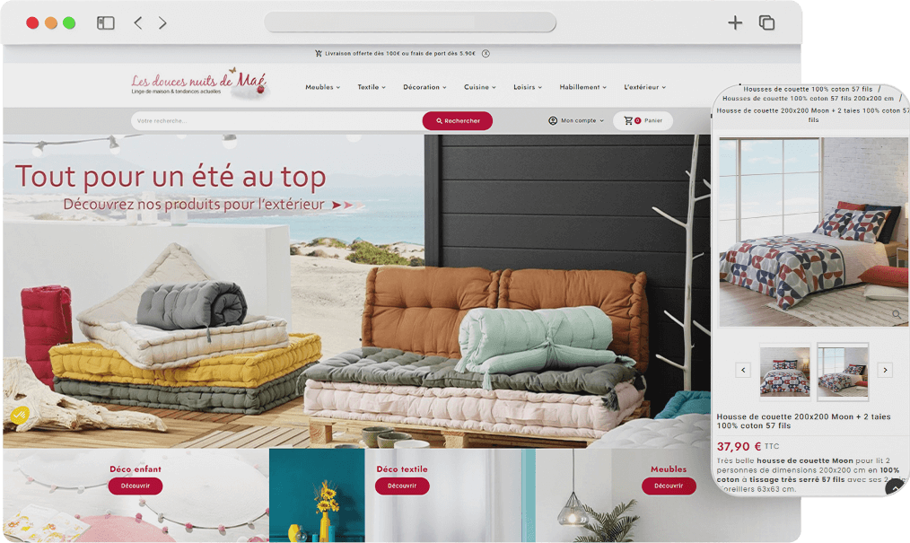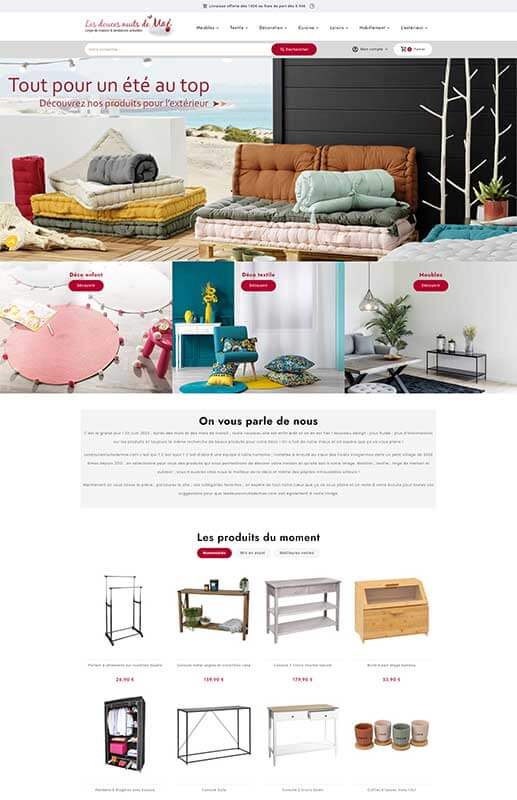 Les douces nuits de Mae et Decoratie sont des sites de vente en ligne de meubles, textiles, décorations etc… pour l’intérieur de la maison.