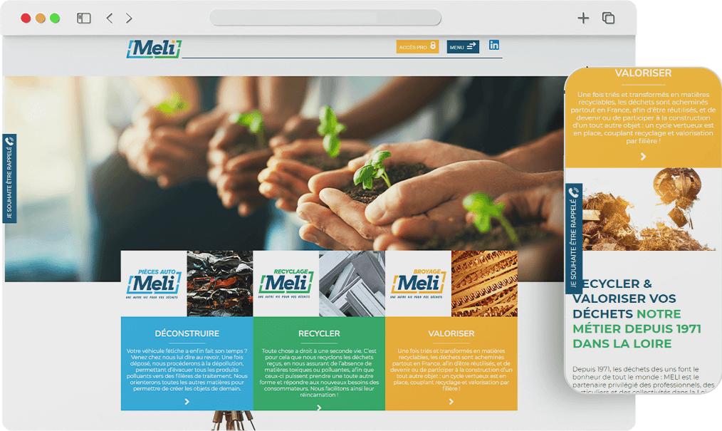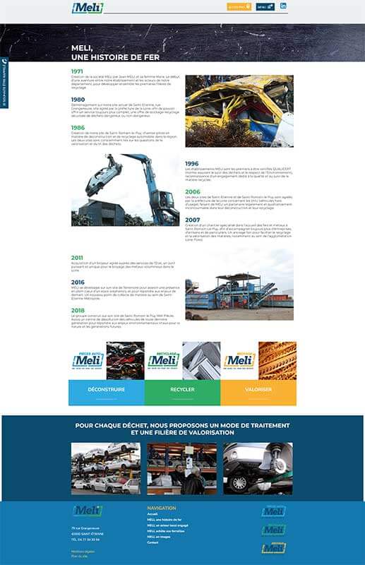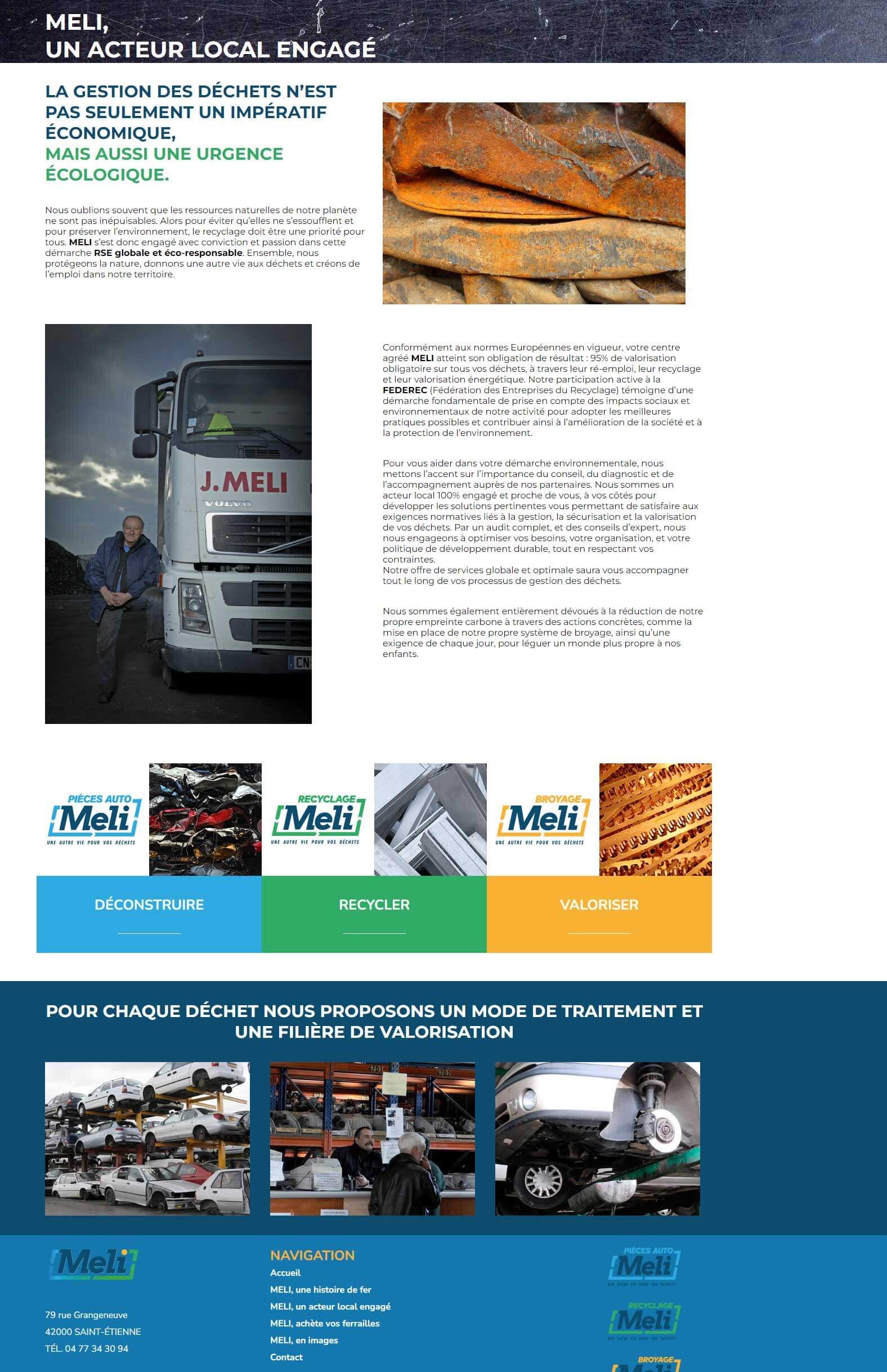 L’entreprise MELI a développé une gamme de solutions environnementales performantes, innovantes et durables. Cette dernière permet d’assurer la collecte, la déconstruction, le tri, le recyclage et la valorisation des déchets (fers, métaux…) et véhicules en fin de vie, ainsi que des déchets verts, plastiques et cartons. Sur ce site réalisé sous WordPress, nous avons eu le plaisir de collaborer avec notre partenaire design : Les Globules