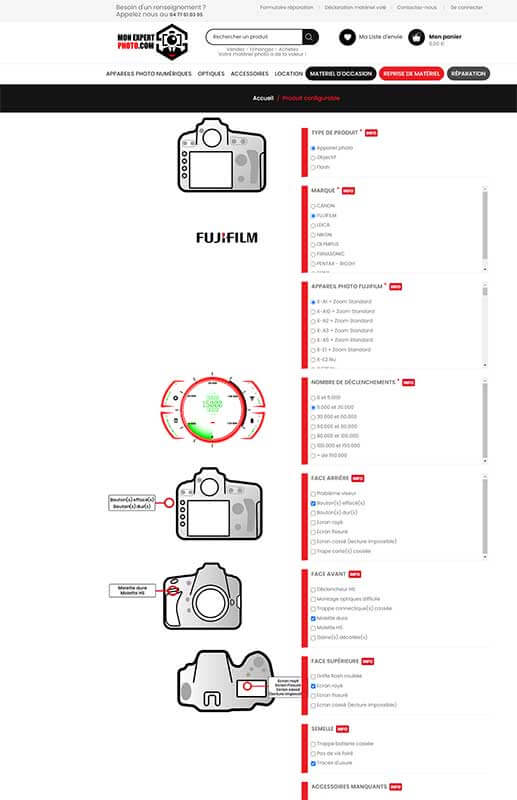 - Configurateur avancé pour estimer le coût de reprise de matériel photo
