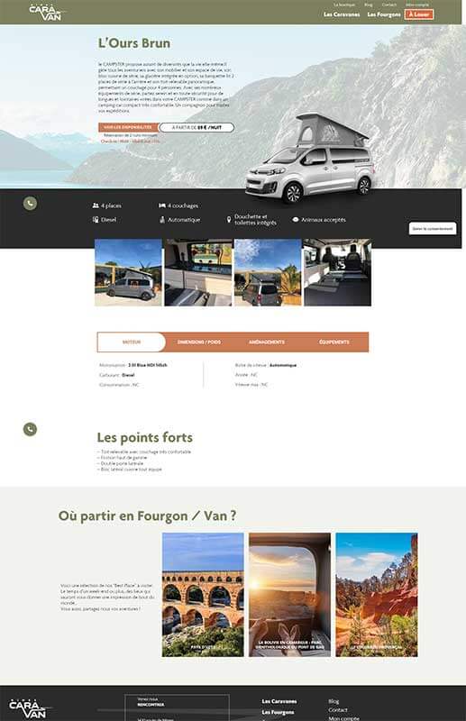 - Réalisé sous WordPress avec Elementor, le site a nécessité des développements spécifiques permettant de gérer les réservations de campings cars