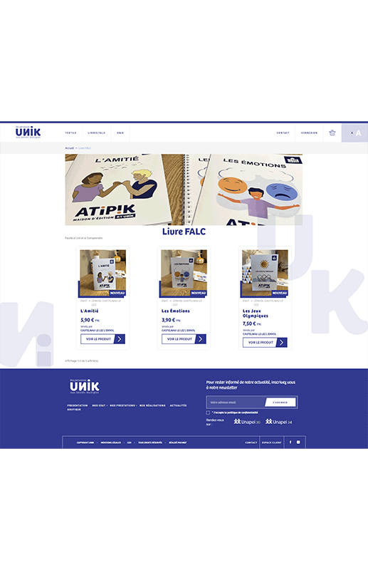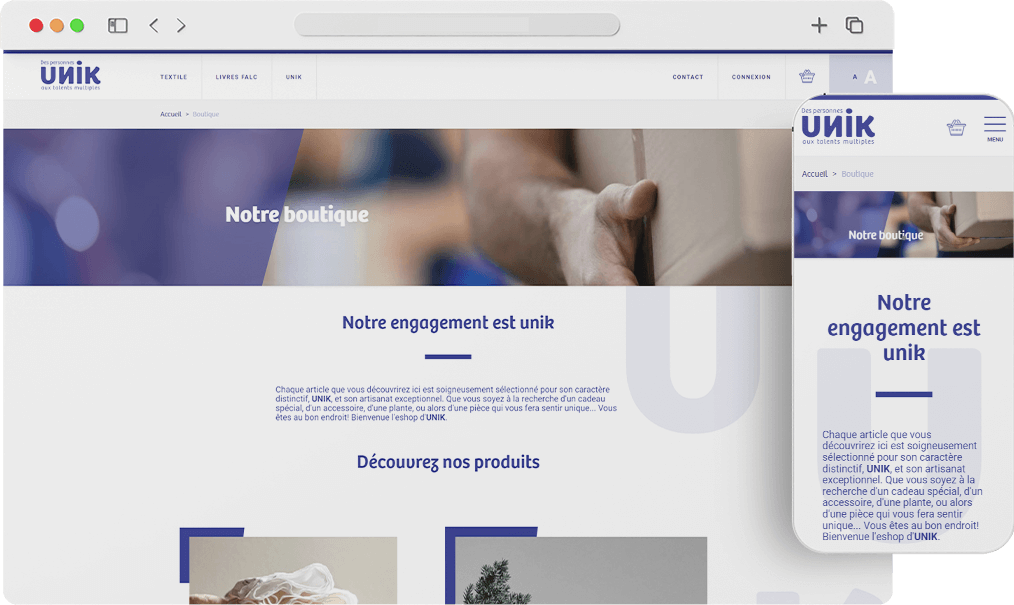 Le site e-commerce Unik a été réalisé en collaboration avec l’Agence de communication MGT Quidam, qui a imaginé le design inclusif de ce site.